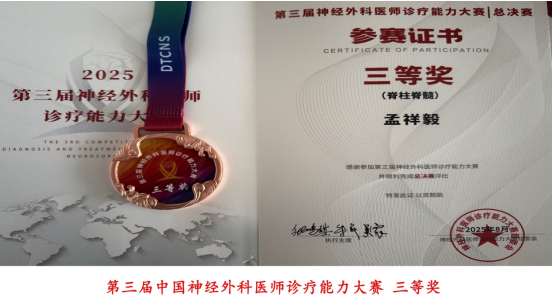 2025年8月29日,哈尔滨医科大学附属第一医院神经外科二病房陈晓丰教授、赵博贤副教授及孟祥毅主治医师脊髓脊柱团队凭借高难度延髓至颈髓髓内恶性肿瘤案例获第三届神经外科医师诊疗能力大赛脊髓脊柱组专业全国三等奖。充分展现了哈医大一院在神经外科领域的临床实力与青年医师风采,也彰显了哈医大一院神经外科多年来深耕亚专业发展、加强学科建设的成绩。